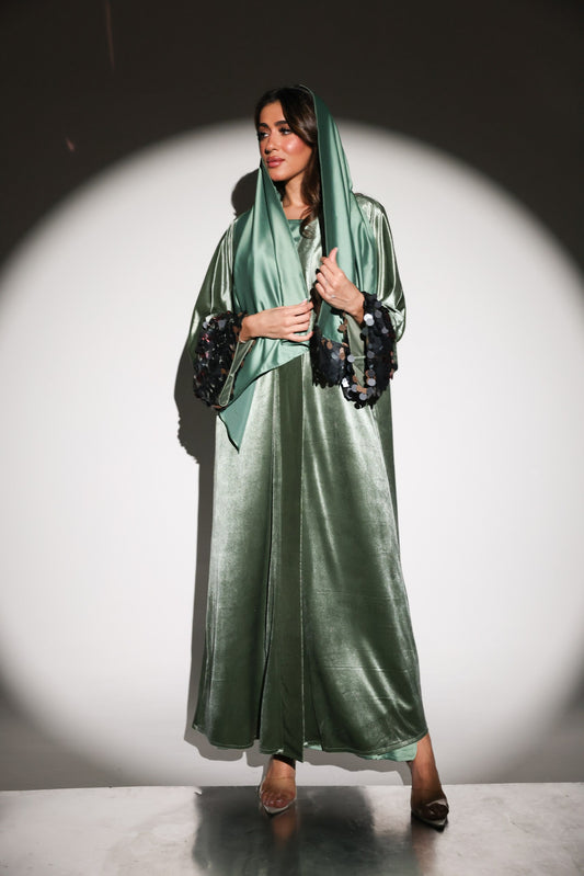 Amani Velvet Abaya 3-Piece Set With Glitter