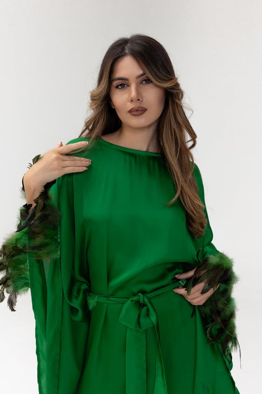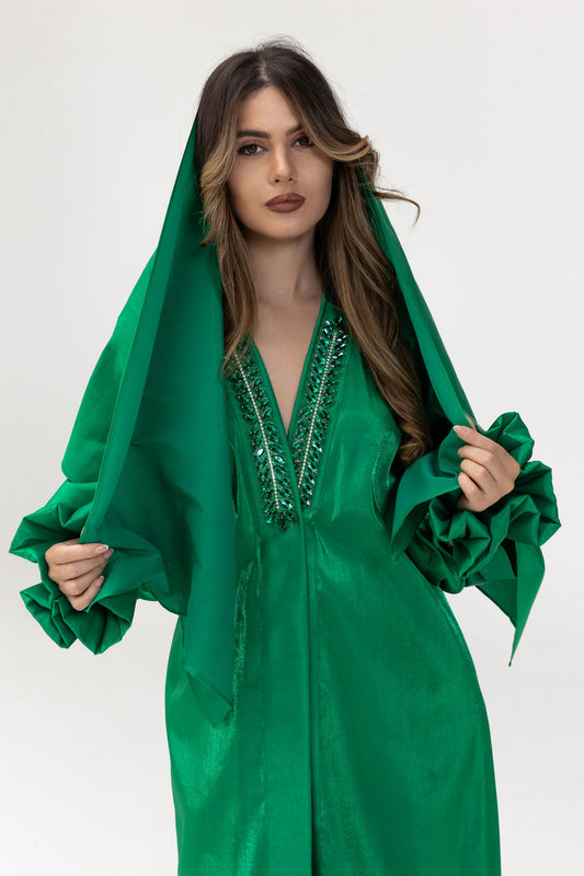 Ishtar Emerald Green Luxury Abaya Set SS25-26